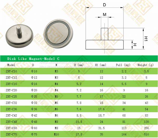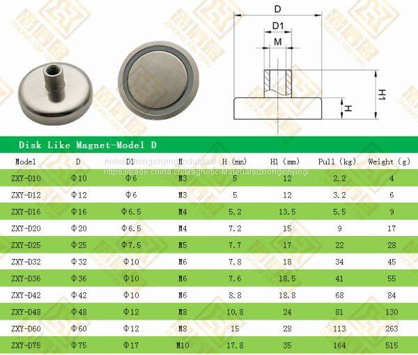 | Model | D | M | H(mm) | H1 (mm) | D1 | Pull(kg) | Weight(g) |