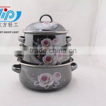 16-20cm 3 Pcs Enamel Casserole With Cover Dark Color Beautiful Decal
