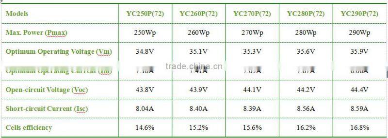 Note: the specifications are obtained under the Standard Test Condition (STC): 1,000W/M2, Am 1.5, Cell Temperature 25℃