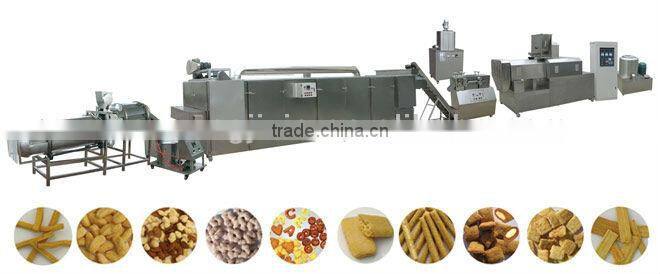 Snack food | 1. mixer2.screw conveyor 3.Twin screw-extruder4.Air-conveyor 5.Roasting oven 6.flavoring line | 100-120kg/h | 53kw | 15*0.8*1.6m |