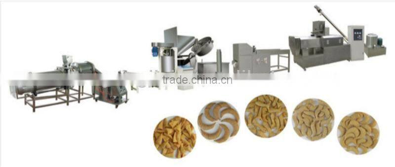 This line use wheat flour as the main raw material, first extruded, cured by the double screw extruder, then fried by the fryer, this line can produce the salad snack food with fashion shape, good and special taste, the tissue of the food fine and smooth, easily to absorb and is quite popular in the market.,and it can produce the snack food automatically.