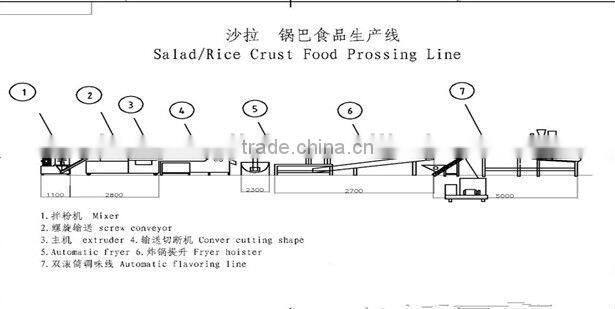 processing line:Mixer-conveyor-extruder-hoister-fryer-cooling bed-sifterSnack equipment fried snack food making production line