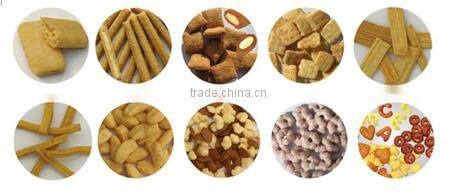 Core filling snack food machine take corn flour, rice flour, corn grits, millet, etc as raw materials for production. Using advanced extruding technology,through changing moulds and production technics to produce many kinds of popular snack food in the market.It has a agility scheme,strong adaptability."Low cost, high profits" is the suitable generalization of Snack food production line, especially for puff snack food.
