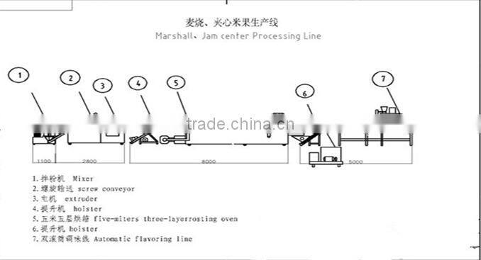 Core filling food | 1.mixer2.screw-conveyor3.double-screw-extruder4.Multi-function re-filler6.large-hoister7.Roasting oven8.Flavoring line |