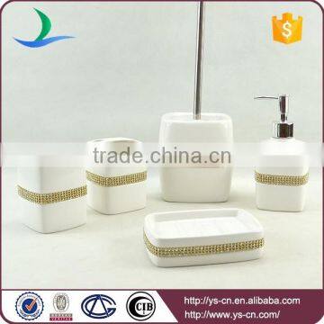 Ceramic Hotel Bathroom Sanitary Items With Golden Rhinestone