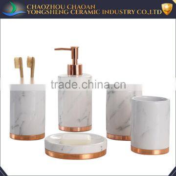 Hotel Rose Gold Metal Base Ceramic Bathroom Accessories Whit Marble Effect