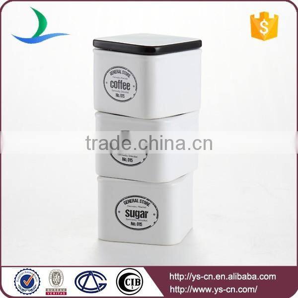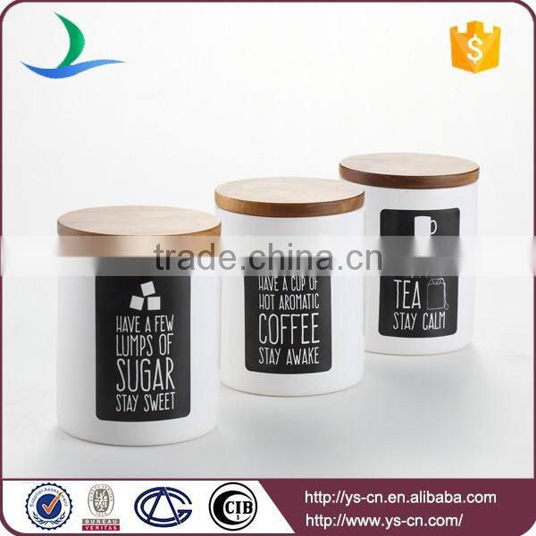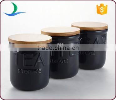 Ceramic Black 3pcs Unique Canister Sets With Wooden Lid
