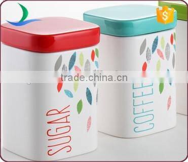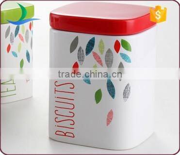 China Supplier Colorful Leaves Decal Ceramic Food Storage Jars Cookie Jar