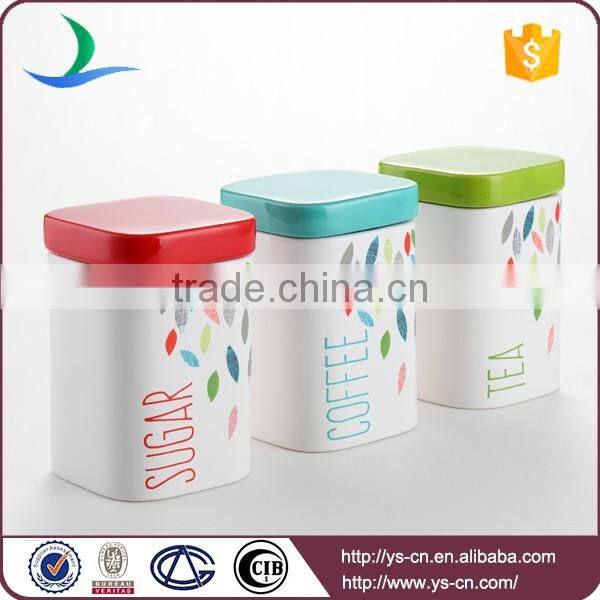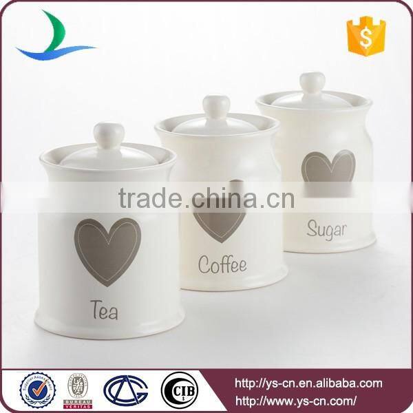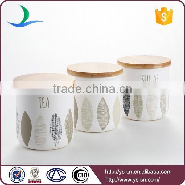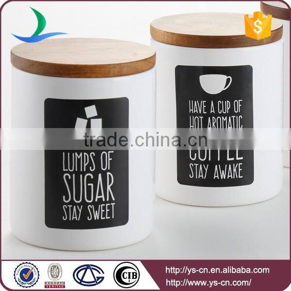 New arrival white ceramic coffee storage jars canisters with wood lid