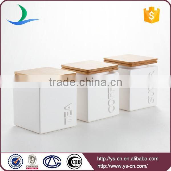 New Arrival White Ceramic Coffee Storage Jars Canisters With Wood Lid