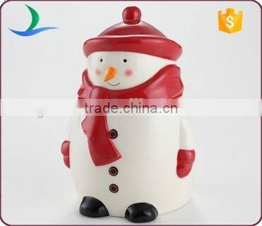 Christmas Vintage Style Biscuit Barrel Snowman Ceramic Cookie Jar