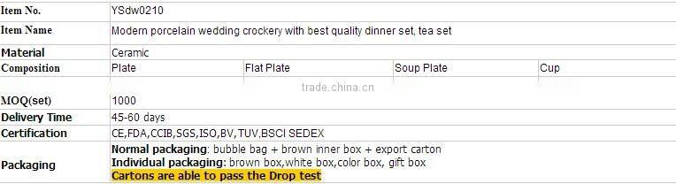Modern Porcelain Wedding Crockery With Best Quality Dinner Set, Tea Set