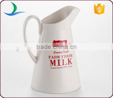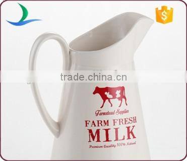 Eco-friendly white ceramic house milk frothing pitcher with prints