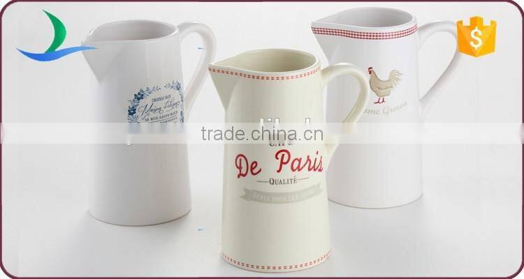 Wholesale white decal ceramic water pitcher for bathroom usage