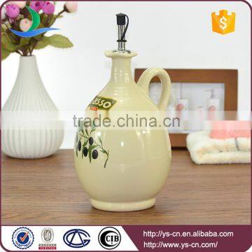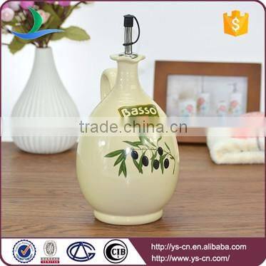 Beige olive branch pattern ceramic oil and vinegar bottles wholesale