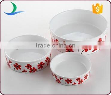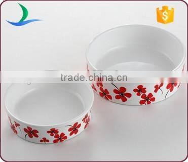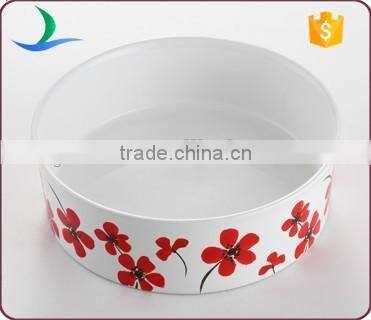 Red Flower Decal Pet Feeder, Ceramic Pet Bowl