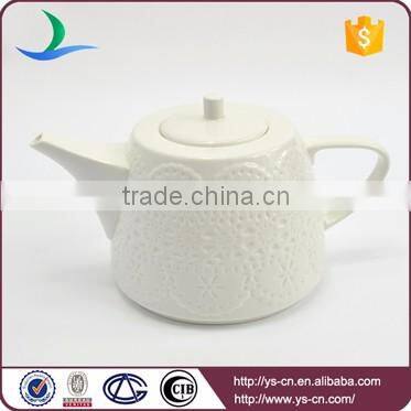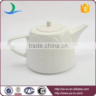Best selling products elegant flower pattern embossed white porcelain tea pot