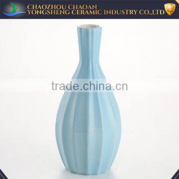 Matt Blue Ceramic Vase Painted by Hand for Hotel Decoration