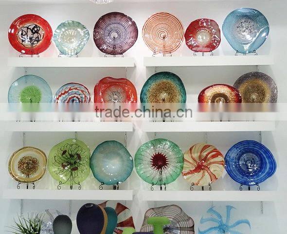 decorative glass plate wall art; art glass wall plates; blown glass plate wall decoration;wedding decor plates