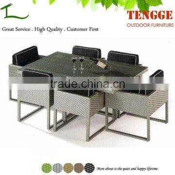 TG15-0266 6 seater rattan dinner set cane dining table chair set
