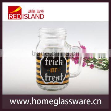 2016 Popular Glass Mason Jar With Handle and Decal