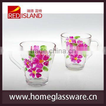 Glass Manufactory Supply Hand-painted Emboss Drinking Glass Mug, Tea Cup
