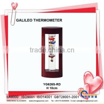 Galileo thermometer is one of our main products.It has a special appearance which includes a cylinder with liquid paraffin and coulourful glass balls.The glass balls can be made in different styles.such as heart shape,gourd shape ect. Below the glass balls,there are many little tag with different temperature.The tag can also be made in many styles,such as butterfly tag,digit tag.If need,we can make other tags by you need.