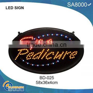 4. Material: PCB front board, plastic outframe,Aluminium plastic background, 5MM or 8mm Super Brightness LED,with the hanging chain.