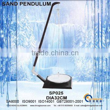 Galileo began his study of the pendulum while, according to legend, he watched a suspended lamp swing back and forth in the cathedral of Pisa. In an ingenious way the Sand Pendulum takes this scientific principle (a weight mounted so that it can swing freely under the influence of gravity) to create fantastic designs on sand. Each design will be unique and beautifully scaped into sand.