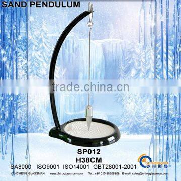 Galileo began his study of the pendulum while, according to legend, he watched a suspended lamp swing back and forth in the cathedral of Pisa. In an ingenious way the Sand Pendulum takes this scientific principle (a weight mounted so that it can swing freely under the influence of gravity) to create fantastic designs on sand. Each design will be unique and beautifully scaped into sand.