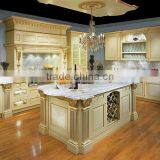 European Style Golden Solid Wood Kitchen Cabinet/Royal Rococo Style Kitchen Cabinet