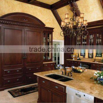 Antique Style Luxury Solid Wood Walnut Kitchen Cabinet/Classic American Style Kitchen Furniture