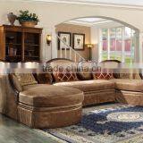 European Classic Wooden Frame With Velvet Fabric Corner Sofa/Brown Color Antique Living Room Sofa Furniture (MOQ=1 Set)