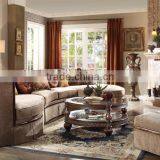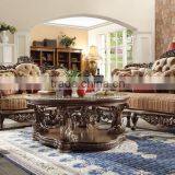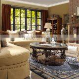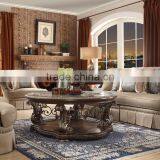 Comfortable American Vintage Solid Wood Fabric Living Room Sofa Set/Carving Round Coffee Table (MOQ=1 Set)