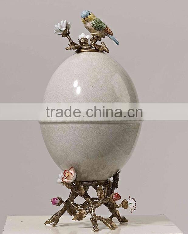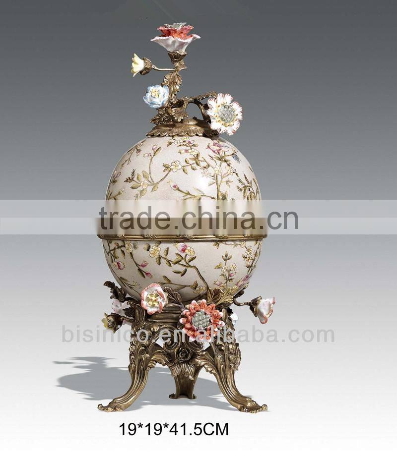 Deluxe arts home decorative flower pot, Noble European design porcelain with brass jar vase