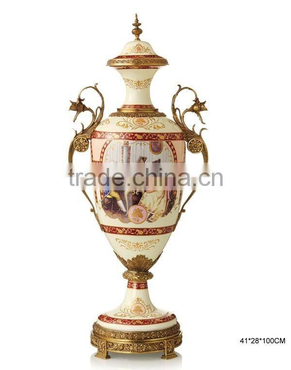 Deluxe arts home decorative jar, Noble European design porcelain with brass prize cup