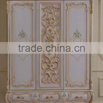 European Painted Triple Door Wardrobe, French Rococo Style Three Doors Wardrobe