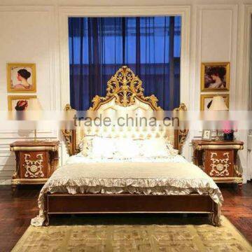 European French Style Fine Carved Upholstered Golden Trim Bisini New Product Bedroom Set