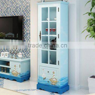 Mediterranean Style Liquor Cabinet, Sailing Boat Handpainting Wooden Drinks Cabinet, Pastoral Living Room Showcase (BF01-X1151)