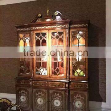 Imperial Noble Design Dinning Set, Luxury Wood Carved Cupboard Inlaid With Shell Ornament