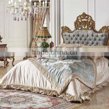 Imperial Noble Wood Carved Queen Bed, Luxury Gold Painted Wooden Bedroom Furniture