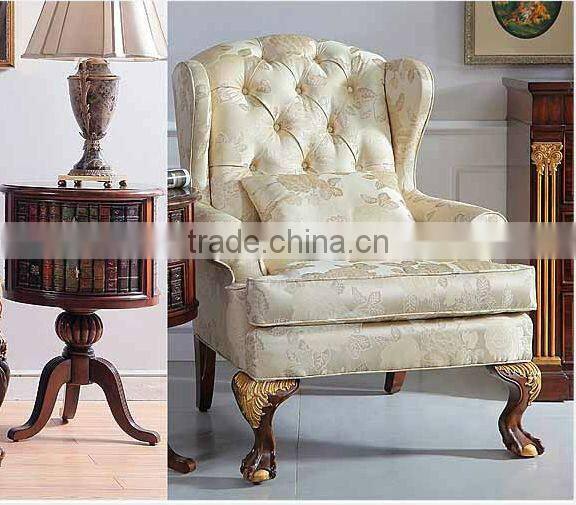 Antique Classic Palace Leisure Chair, Luxury Gold Painting Armed Chair, Carved Wooden Living Room Furniture