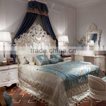 Graceful Antique White Color Solid Wood Hand Carved Headboard Double Bed