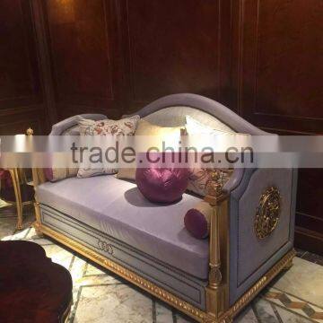 Luxury solid wood frame exquisite golden hand carving special light purple genuine leather living room sofa set