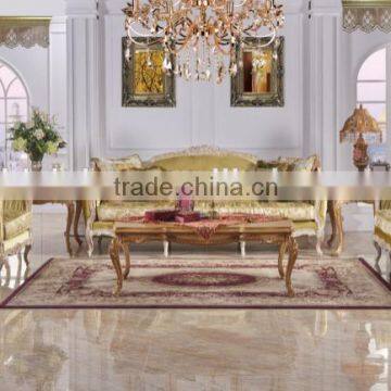Classic European style antique finishing solid wood living furniture fabric sofa set