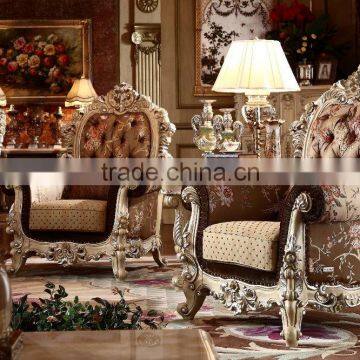 Palace Classic Hand Carved Wooden Upholstery Living Room Sofa Set Furniture(MOQ=1 SET)