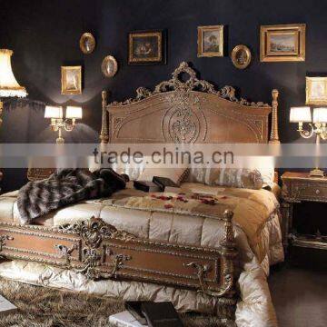 European Style Antique Noble Solid Wood Bedroom Furniture Luxury Double Bed