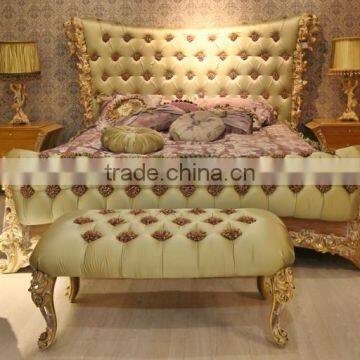 Italy Rose Carving Green Fabric Upholstered King Size Bed/ Baroque Style New Design Bedroom Furniture/Romatic Wooden Wedding Bed