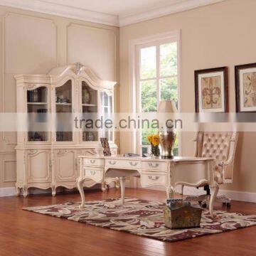 Classy French Baroque Style White Office Bookcase/ Antique Royal Wooden Carving Executive Bookshelf