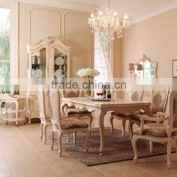 Luxury French Carved Dining Room Furniture/Solid Wood French Style Dining Table Set-White